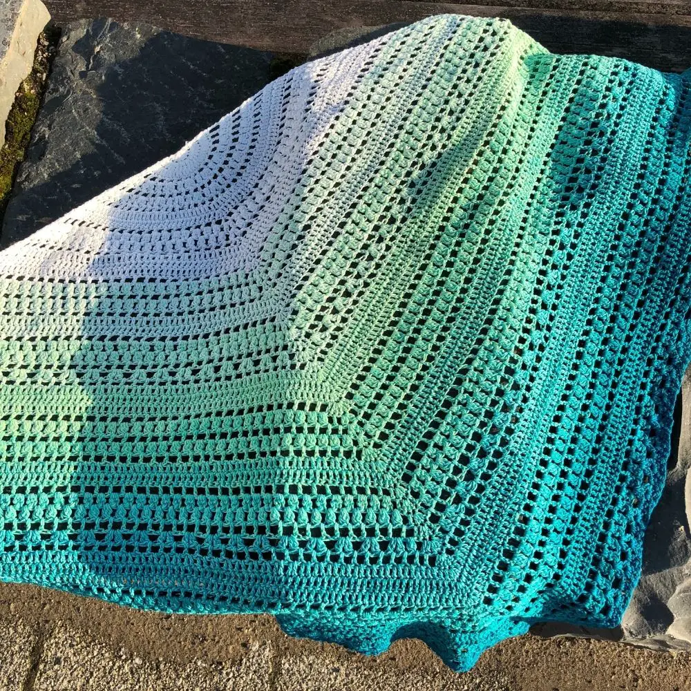 The centre of this crochet shawl pattern does not consist of the same stitches in the centre of each row. This isn’t something I have tried before in a crochet triangle shawl but I like the overall effect and it is something I would definitely like to try again.